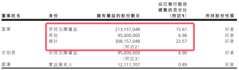 On the surface, Lei Jun owns 22.57% of the shares, but among them: 95 million shares belong to Jinshan founder beg Bojun, just the voting rights to Lei Jun. 38.34 million shares belong to Xiaomi Group, which is not counted in Lei Jun’s personal wealth.